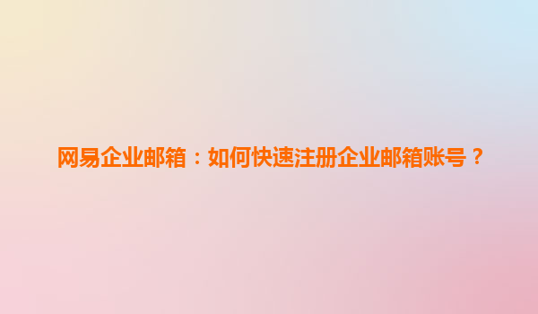 2025-04-11如何快速注冊(cè)網(wǎng)易企業(yè)郵箱賬號(hào) 在當(dāng)今快速發(fā)展的商業(yè)環(huán)境中,企業(yè)郵箱成為了公司溝通的重要工具。網(wǎng)易企業(yè)郵箱以其穩(wěn)定性高、安全性強(qiáng)、操作簡(jiǎn)便等優(yōu)勢(shì),成為了眾多企業(yè)的首選。本文將詳細(xì)介紹如何快速注冊(cè)網(wǎng)易...