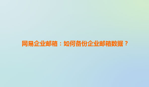 4008-020-360 如何備份網(wǎng)易企業(yè)郵箱數(shù)據(jù) 在當(dāng)今商業(yè)環(huán)境中,電子郵件是企業(yè)溝通的重要工具。網(wǎng)易企業(yè)郵箱作為一種專業(yè)的電子郵件解決方案,不僅提供穩(wěn)定可靠的郵件服務(wù),還提供了數(shù)據(jù)備份等功能,確保企業(yè)數(shù)據(jù)的安全。本文將...