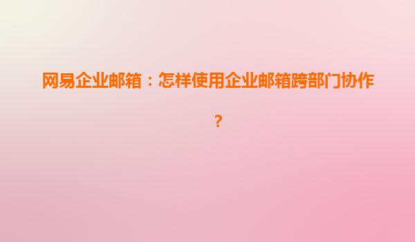 2025-04-09如何使用網(wǎng)易企業(yè)郵箱實現(xiàn)跨部門協(xié)作 引言 在現(xiàn)代企業(yè)中,跨部門協(xié)作是提升工作效率和創(chuàng)新能力的重要方式。網(wǎng)易企業(yè)郵箱憑借其強大的功能和便捷的操作,成為企業(yè)內(nèi)部溝通的重要工具。本文將探討如何利用網(wǎng)...
