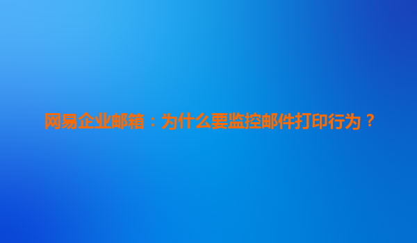 2025-04-09網(wǎng)易企業(yè)郵箱:為什么要監(jiān)控郵件打印行為? 在現(xiàn)代企業(yè)中,郵件是信息交流的重要工具。然而,隨著信息安全問題的日益突出,企業(yè)對郵件的管理和監(jiān)控需求也在不斷增加。網(wǎng)易企業(yè)郵箱作為國內(nèi)領(lǐng)先的企業(yè)郵箱服務(wù)提...