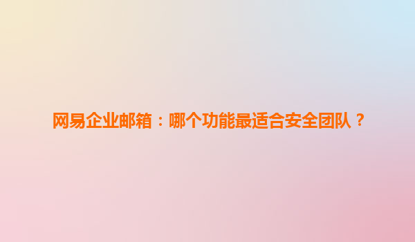 2025-04-09網(wǎng)易企業(yè)郵箱:安全團隊的最佳選擇 引言 在當(dāng)今數(shù)字化時代,企業(yè)郵箱不僅是溝通的工具,更是信息安全的前線。網(wǎng)易企業(yè)郵箱憑借其強大的功能和安全性,成為眾多企業(yè),特別是安全團隊的首選。本文將深入探討...