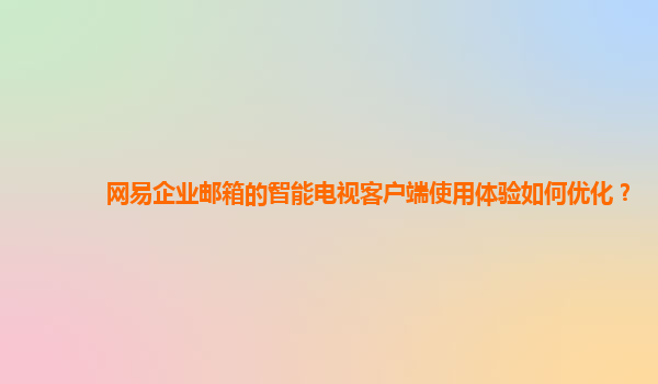 2024-12-04網(wǎng)易企業(yè)郵箱智能電視客戶端使用體驗(yàn)優(yōu)化方案 隨著科技的不斷進(jìn)步,智能電視已逐漸成為家庭和辦公場景中不可或缺的設(shè)備之一。企業(yè)郵箱作為一種高效的溝通工具,也越來越多地被應(yīng)用到智能電視平臺。然而,智能電視的...