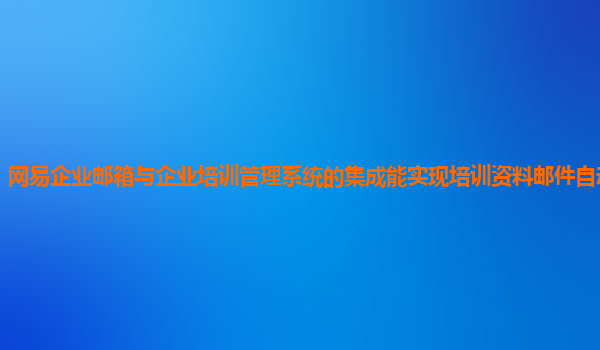 2024-12-04網(wǎng)易企業(yè)郵箱與企業(yè)培訓(xùn)管理系統(tǒng)的集成能實(shí)現(xiàn)培訓(xùn)資料郵件自動推送嗎? 隨著企業(yè)信息化管理的不斷深入,越來越多的公司開始尋求高效、智能的工具來提升企業(yè)管理和員工培訓(xùn)的效率。網(wǎng)易企業(yè)郵箱作為一款企業(yè)級通...