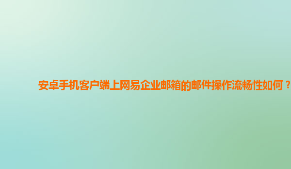 4008-020-360 安卓手機(jī)客戶端上網(wǎng)易企業(yè)郵箱的郵件操作流暢性分析 隨著移動(dòng)互聯(lián)網(wǎng)的普及和智能手機(jī)的廣泛應(yīng)用,企業(yè)郵箱的使用場(chǎng)景也逐漸從PC端向移動(dòng)端擴(kuò)展。尤其在工作中,郵件的接收、發(fā)送及管理已經(jīng)不再局限于傳統(tǒng)的電腦端。...