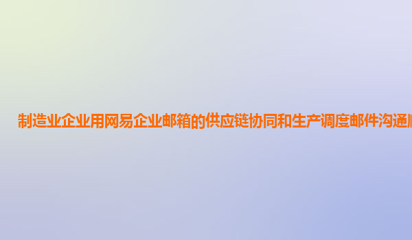 2024-11-28制造業(yè)企業(yè)用網(wǎng)易企業(yè)郵箱的供應(yīng)鏈協(xié)同和生產(chǎn)調(diào)度郵件溝通順暢嗎? 隨著信息技術(shù)的不斷進(jìn)步,企業(yè)間的溝通方式越來(lái)越多樣化,尤其是在制造業(yè)中,供應(yīng)鏈協(xié)同和生產(chǎn)調(diào)度的高效溝通顯得尤為重要。郵件作為一種傳統(tǒng)的溝...