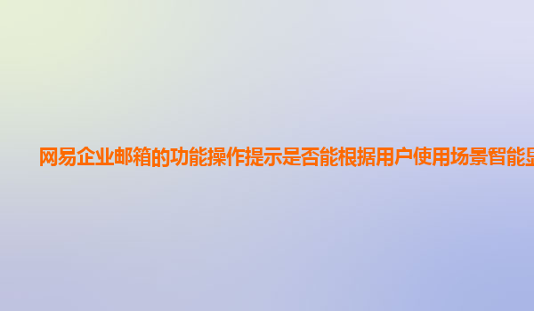 2024-11-27網(wǎng)易企業(yè)郵箱功能操作提示是否能根據(jù)用戶使用場景智能顯示? 在數(shù)字化時代,企業(yè)溝通和信息傳遞的效率至關(guān)重要。電子郵件作為一種重要的辦公工具,其功能是否能夠根據(jù)用戶的實際使用場景進行智能優(yōu)化,直接影響到用...