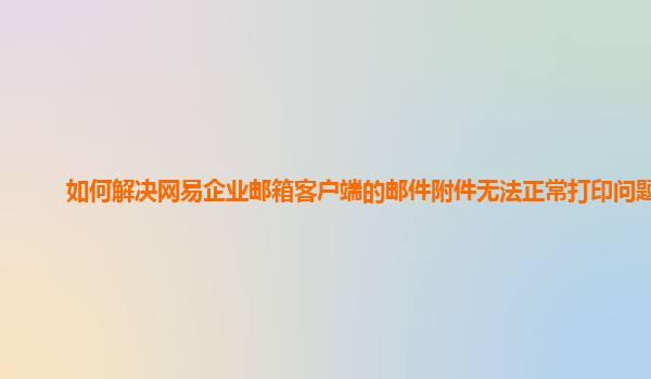 2024-11-26如何解決網(wǎng)易企業(yè)郵箱客戶端的郵件附件無法正常打印問題? 網(wǎng)易企業(yè)郵箱作為一款高效、安全且功能豐富的企業(yè)級郵箱解決方案,廣泛應(yīng)用于眾多公司和組織中。它提供了靈活的郵件管理、強大的附件支持和出色的安全性保...