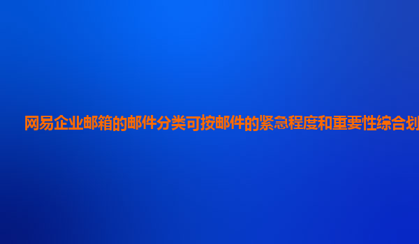 2024-11-26網(wǎng)易企業(yè)郵箱的郵件分類:按緊急程度和重要性綜合劃分 在現(xiàn)代企業(yè)中,電子郵件已經(jīng)成為了溝通的主要手段。隨著工作節(jié)奏的加快和信息量的增加,如何高效管理和分類郵件成了每個(gè)企業(yè)必需解決的問(wèn)題。網(wǎng)易企業(yè)郵箱作為...
