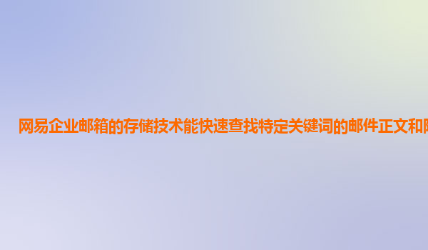 2024-11-26網(wǎng)易企業(yè)郵箱存儲(chǔ)技術(shù)與郵件內(nèi)容快速查找分析 隨著企業(yè)對(duì)郵件管理的需求日益增加,郵件存儲(chǔ)和查找技術(shù)成為了郵箱服務(wù)商競(jìng)爭(zhēng)的關(guān)鍵因素之一。網(wǎng)易企業(yè)郵箱作為國(guó)內(nèi)領(lǐng)先的企業(yè)郵箱服務(wù)提供商,依托其強(qiáng)大的存儲(chǔ)技術(shù),...