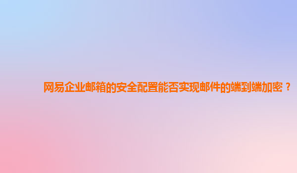 2024-11-26網(wǎng)易企業(yè)郵箱的安全配置及端到端加密實(shí)現(xiàn)探討 隨著信息技術(shù)的飛速發(fā)展,企業(yè)郵箱作為日常辦公和溝通的重要工具,已經(jīng)成為了現(xiàn)代企業(yè)運(yùn)作中不可或缺的一部分。尤其是在企業(yè)內(nèi)部和外部的郵件傳輸中,如何保障信息安...