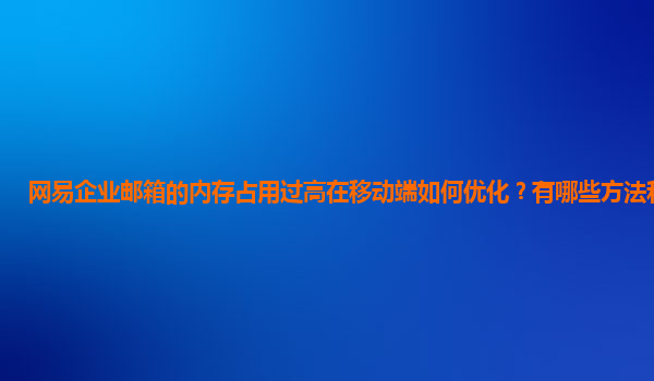 2024-11-22網(wǎng)易企業(yè)郵箱的內(nèi)存占用過高在移動(dòng)端如何優(yōu)化? 在現(xiàn)代企業(yè)日常運(yùn)營中,電子郵件已成為溝通的重要工具,而企業(yè)郵箱作為專為公司提供的郵件服務(wù),常常承載著重要的業(yè)務(wù)溝通、文檔傳輸和信息管理。然而,隨著移動(dòng)...