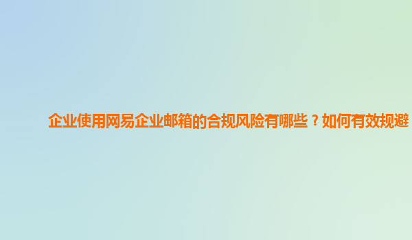 2024-11-20企業(yè)使用網(wǎng)易企業(yè)郵箱的合規(guī)風(fēng)險及規(guī)避策略 隨著信息技術(shù)的迅猛發(fā)展,電子郵件已經(jīng)成為企業(yè)日常溝通和信息傳遞的重要工具。企業(yè)郵箱作為一種專為企業(yè)設(shè)計的通信工具,能夠有效地提高企業(yè)內(nèi)部溝通的效率。然而,在企...