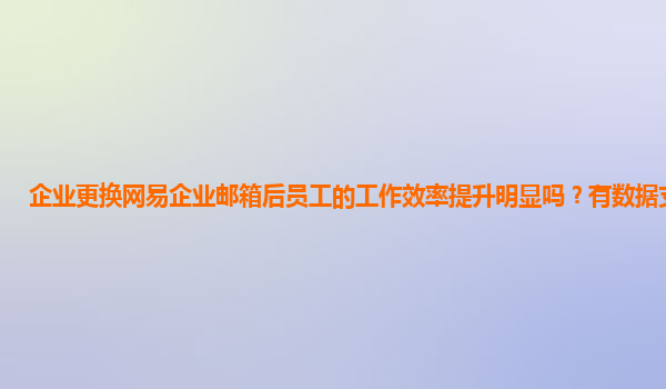 4008-020-360 企業(yè)更換網(wǎng)易企業(yè)郵箱后員工的工作效率提升明顯嗎?有數(shù)據(jù)支持嗎? 隨著數(shù)字化時(shí)代的到來(lái),企業(yè)管理和辦公流程的效率越來(lái)越依賴(lài)于電子郵件等辦公工具。郵箱作為企業(yè)日常工作中的重要溝通工具,其穩(wěn)定性、便捷性和功...