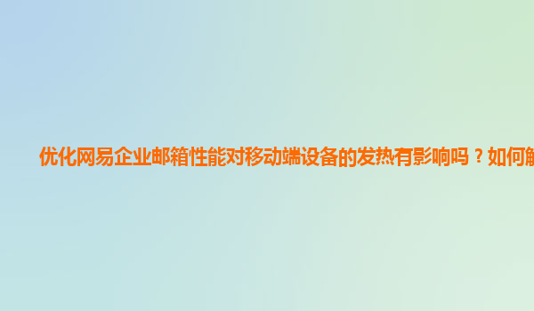 2024-11-12優(yōu)化網(wǎng)易企業(yè)郵箱性能對移動端設(shè)備的發(fā)熱有影響嗎?如何解決? 隨著智能手機和移動設(shè)備的普及,企業(yè)郵箱逐漸成為職場人士日常工作的重要工具。網(wǎng)易企業(yè)郵箱作為國內(nèi)領(lǐng)先的企業(yè)郵箱解決方案,其強大的功能和高效的服...