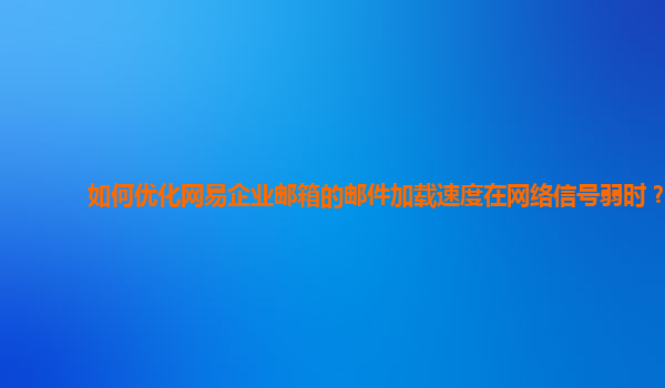 2024-11-11如何優(yōu)化網(wǎng)易企業(yè)郵箱的郵件加載速度在網(wǎng)絡(luò)信號弱時? 網(wǎng)易企業(yè)郵箱作為國內(nèi)領(lǐng)先的企業(yè)級電子郵件解決方案,廣泛應(yīng)用于各行各業(yè),提供高效、穩(wěn)定的郵件管理服務(wù)。然而,郵件的加載速度可能受到多種因素的影響,尤其...