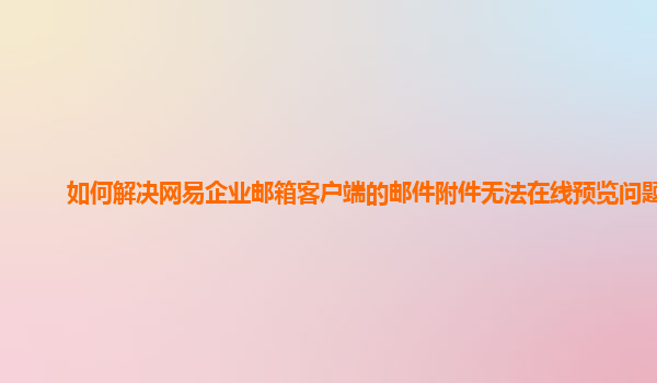 2024-11-09如何解決網(wǎng)易企業(yè)郵箱客戶端的郵件附件無法在線預(yù)覽問題 隨著企業(yè)的快速發(fā)展和信息化程度的不斷提高,越來越多的公司選擇使用企業(yè)郵箱來處理公司內(nèi)部和外部的郵件溝通。網(wǎng)易企業(yè)郵箱,作為國內(nèi)領(lǐng)先的企業(yè)郵箱服務(wù)提...