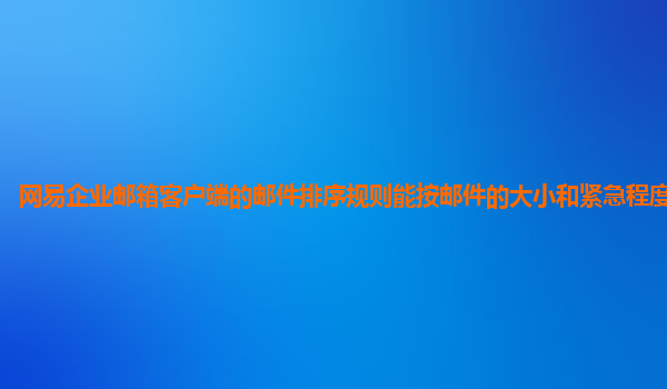 2024-11-09網(wǎng)易企業(yè)郵箱客戶端的郵件排序規(guī)則分析:能否按郵件大小和緊急程度混合排序? 在現(xiàn)代企業(yè)中,電子郵件已經(jīng)成為了溝通和協(xié)作的重要工具。企業(yè)郵箱作為員工工作中不可或缺的一部分,除了能夠提供基本的郵件收發(fā)功能外...