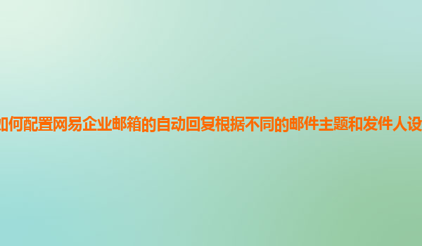 2024-11-09如何配置網(wǎng)易企業(yè)郵箱的自動回復(fù),根據(jù)不同的郵件主題和發(fā)件人設(shè)置不同內(nèi)容 隨著信息時代的到來,電子郵件已經(jīng)成為現(xiàn)代商業(yè)溝通中不可或缺的一部分。企業(yè)使用郵箱進行溝通,不僅方便快捷,而且可以幫助提高工作效率...