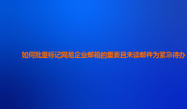 2024-11-07如何批量標(biāo)記網(wǎng)易企業(yè)郵箱的重要且未讀郵件為緊急待辦? 隨著企業(yè)日常業(yè)務(wù)的快速發(fā)展,員工在郵箱中接收的郵件數(shù)量逐漸增多,如何有效管理和處理郵件成為一個重要課題。在網(wǎng)易企業(yè)郵箱中,批量標(biāo)記重要且未讀郵件為...