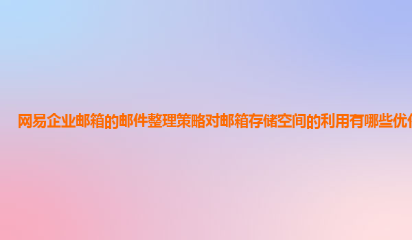 2024-11-07網(wǎng)易企業(yè)郵箱郵件整理策略優(yōu)化存儲空間利用 在現(xiàn)代辦公環(huán)境中,企業(yè)郵箱的使用頻率日益增加,郵箱存儲空間的高效管理變得尤為重要。對于網(wǎng)易企業(yè)郵箱用戶而言,采用合理的郵件整理策略可以顯著提升存儲空間的利...