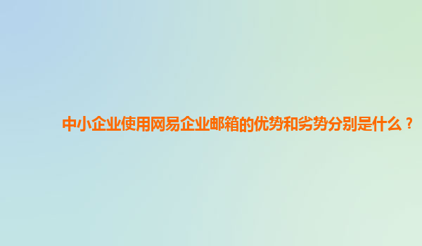 2024-11-07中小企業(yè)使用網(wǎng)易企業(yè)郵箱的優(yōu)勢(shì)和劣勢(shì) 一、網(wǎng)易企業(yè)郵箱的優(yōu)勢(shì) 1.穩(wěn)定性和可靠性 網(wǎng)易作為中國(guó)領(lǐng)先的互聯(lián)網(wǎng)公司,其企業(yè)郵箱系統(tǒng)經(jīng)過多年的發(fā)展和優(yōu)化,具備了極高的穩(wěn)定性和可靠性。對(duì)于中小企業(yè)來說,...