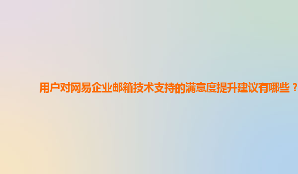 2024-11-07用戶對(duì)網(wǎng)易企業(yè)郵箱技術(shù)支持的滿意度提升建議 網(wǎng)易企業(yè)郵箱作為國(guó)內(nèi)領(lǐng)先的企業(yè)級(jí)郵箱服務(wù)提供商,憑借其穩(wěn)定性、安全性以及強(qiáng)大的功能,得到了廣大企業(yè)用戶的青睞。盡管其整體表現(xiàn)出色,但隨著使用者需求的不斷...