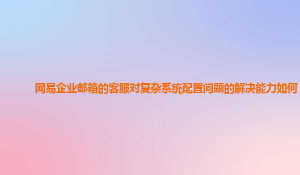 2024-11-07網(wǎng)易企業(yè)郵箱客服在復(fù)雜系統(tǒng)配置問題解決中的能力分析 網(wǎng)易企業(yè)郵箱(NetEaseEnterpriseMail)以其穩(wěn)定的郵件系統(tǒng)和優(yōu)質(zhì)的客戶服務(wù)深受國內(nèi)外企業(yè)用戶信賴。隨著企業(yè)需求的多樣化和復(fù)雜化,郵...