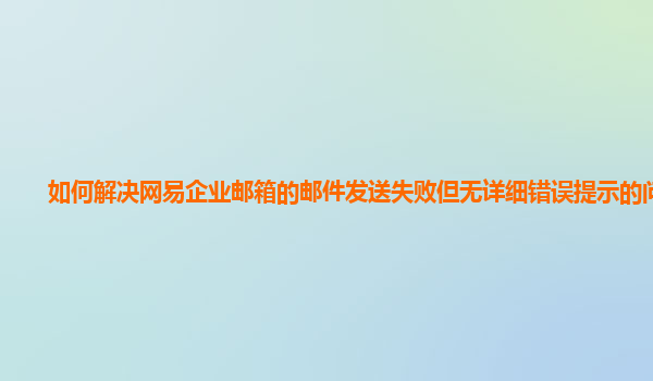2024-11-07如何解決網(wǎng)易企業(yè)郵箱的郵件發(fā)送失敗但無詳細錯誤提示的問題 在日常使用網(wǎng)易企業(yè)郵箱的過程中,企業(yè)用戶可能會遇到郵件發(fā)送失敗的問題,且系統(tǒng)未提供明確的錯誤提示。這種情況會影響業(yè)務(wù)溝通和效率。本文將探討...