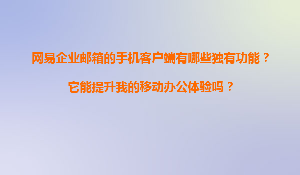 2025-11-20網(wǎng)易企業(yè)郵箱手機(jī)客戶端的獨(dú)有功能與移動(dòng)辦公體驗(yàn)優(yōu)化 一、網(wǎng)易企業(yè)郵箱手機(jī)客戶端的核心獨(dú)有功能 網(wǎng)易企業(yè)郵箱手機(jī)客戶端針對(duì)企業(yè)用戶需求,提供了多項(xiàng)提升效率與安全性...