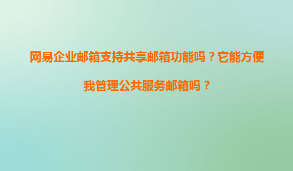 4008-020-360 網(wǎng)易企業(yè)郵箱的共享郵箱功能解析 網(wǎng)易企業(yè)郵箱作為國(guó)內(nèi)領(lǐng)先的企業(yè)級(jí)郵件服務(wù)提供商,其共享郵箱功能是專為團(tuán)隊(duì)協(xié)作設(shè)計(jì)的實(shí)用工具。該功能允許企業(yè)將特定郵箱(如公共服務(wù)郵箱、客服郵箱等)開(kāi)放給多名成員共同...