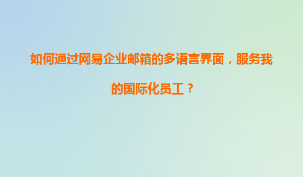 2025-11-20如何通過(guò)網(wǎng)易企業(yè)郵箱的多語(yǔ)言界面,服務(wù)國(guó)際化員工 一、網(wǎng)易企業(yè)郵箱的多語(yǔ)言支持優(yōu)勢(shì) 在全球化經(jīng)濟(jì)背景下,企業(yè)員工往往來(lái)自不同國(guó)家,使用多種語(yǔ)言。網(wǎng)易企業(yè)郵箱作為國(guó)內(nèi)領(lǐng)先的企業(yè)郵箱服務(wù)提供商,其多語(yǔ)...