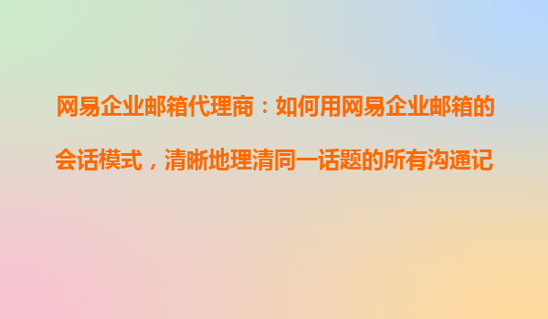 2025-10-24網(wǎng)易企業(yè)郵箱代理商:如何用網(wǎng)易企業(yè)郵箱的會話模式,清晰地理清同一話題的所有溝通記錄? 一、網(wǎng)易企業(yè)郵箱的會話模式:高效溝通的秘密武器 在日常工作中,郵件溝通往往是團隊協(xié)作的核心方式之一。然而,...