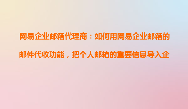 2025-10-24網(wǎng)易企業(yè)郵箱代理商指南:高效利用郵件代收功能導入個人郵箱重要信息 一、網(wǎng)易企業(yè)郵箱的郵件代收功能概述 網(wǎng)易企業(yè)郵箱作為國內(nèi)領先的企業(yè)級郵件服務解決方案,其郵件代收功能(POP3/IMAP)支持用戶將其他郵箱(...