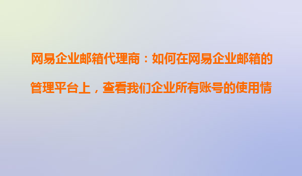 2025-10-24網(wǎng)易企業(yè)郵箱代理商:如何查看企業(yè)賬號使用情況 一、網(wǎng)易企業(yè)郵箱的管理平臺功能簡介 作為網(wǎng)易企業(yè)郵箱的代理商,我們的企業(yè)客戶可以通過網(wǎng)易企業(yè)郵箱的管理平臺,全面掌握企業(yè)郵箱賬號的使用情況。網(wǎng)易企...