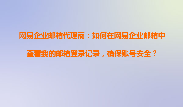 2025-10-24網(wǎng)易企業(yè)郵箱代理商:如何在網(wǎng)易企業(yè)郵箱中查看我的郵箱登錄記錄,確保賬號安全? 在當今數(shù)字化辦公環(huán)境中,企業(yè)郵箱不僅是溝通工具,更是公司數(shù)據(jù)安全的第一道防線。作為國內(nèi)領先的企業(yè)郵箱服務商,網(wǎng)易企...