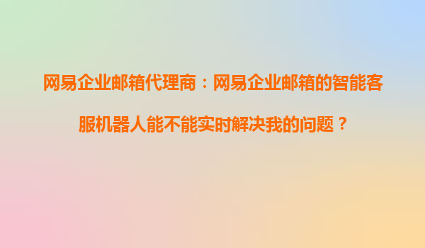 2025-10-24網(wǎng)易企業(yè)郵箱代理商:網(wǎng)易企業(yè)郵箱的智能客服機器人能不能實時解決我的問題? 在現(xiàn)代企業(yè)管理中,高效溝通和信息處理是提升企業(yè)競爭力的關鍵。作為企業(yè)郵箱領域的佼佼者,網(wǎng)易企業(yè)郵箱憑借其強大的功...