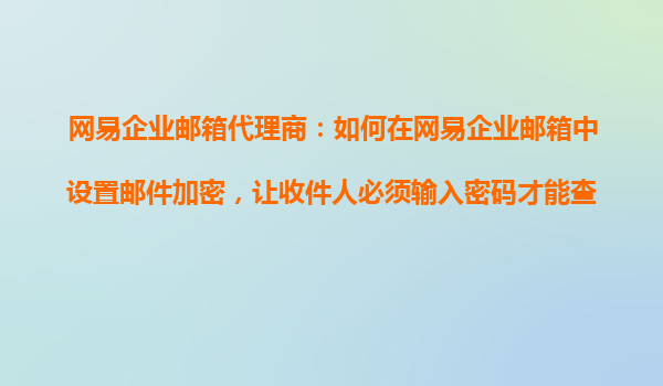 2025-10-24網(wǎng)易企業(yè)郵箱代理商:如何在網(wǎng)易企業(yè)郵箱中設置郵件加密,讓收件人必須輸入密碼才能查看? 在企業(yè)日常運營中,郵件作為重要的溝通工具之一,其安全性備受關注。尤其在涉及敏感信息時,確保郵件內(nèi)容不被泄露...