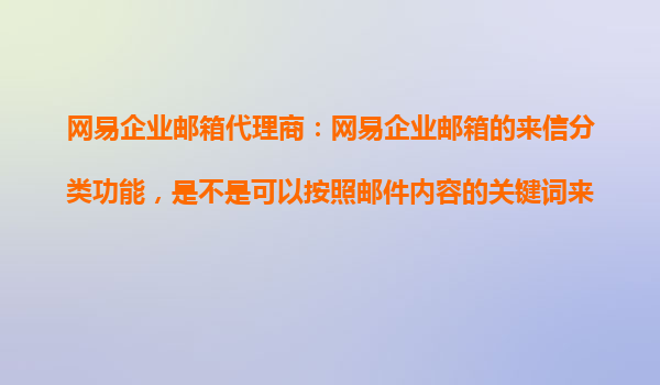 2025-10-24網(wǎng)易企業(yè)郵箱來信分類功能:智能化管理提升辦公效率 智能關鍵詞分類:解放雙手的郵件管理利器 網(wǎng)易企業(yè)郵箱的來信分類功能支持基于郵件內(nèi)容關鍵詞的自動歸類。用戶只需預先設置關鍵詞規(guī)則(如"合同"、"報價...