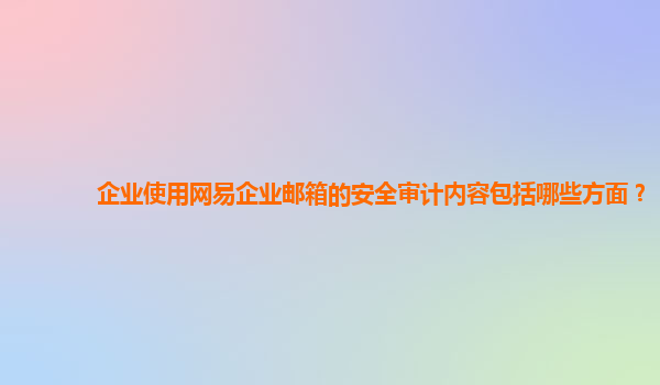4008-020-360 企業(yè)使用網(wǎng)易企業(yè)郵箱的安全審計(jì)內(nèi)容及其優(yōu)勢 一、安全審計(jì)內(nèi)容 在現(xiàn)代企業(yè)管理中,信息安全顯得尤為重要,企業(yè)郵箱作為重要的溝通工具,其安全性不可忽視。網(wǎng)易企業(yè)郵箱的安全審計(jì)內(nèi)容主要包括以下幾個(gè)方...