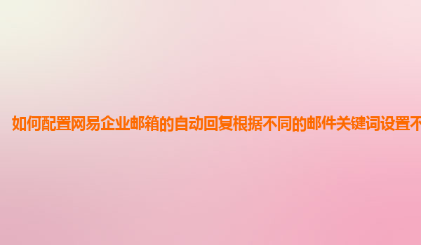 4008-020-360 如何配置網(wǎng)易企業(yè)郵箱的自動(dòng)回復(fù)根據(jù)不同的郵件關(guān)鍵詞設(shè)置不同內(nèi)容 一、網(wǎng)易企業(yè)郵箱的優(yōu)勢(shì) 網(wǎng)易企業(yè)郵箱作為國(guó)內(nèi)領(lǐng)先的郵箱服務(wù)提供商之一,憑借其穩(wěn)定性、安全性和豐富的功能而受到眾多企業(yè)的青睞。...