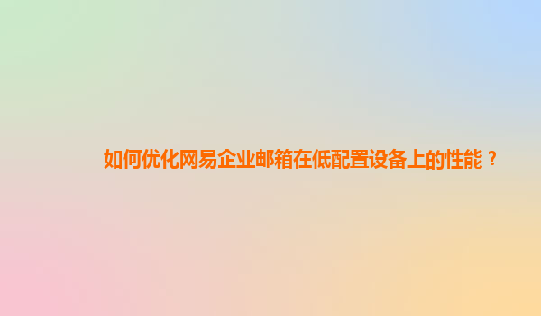 2024-11-01引言 在現(xiàn)代企業(yè)中,郵箱系統(tǒng)是溝通與協(xié)作的重要工具。網(wǎng)易企業(yè)郵箱以其穩(wěn)定性、易用性和多樣的功能受到了廣泛認可。然而,在低配置設備上使用時,如何優(yōu)化其性能是一個值得探討的話題。本文將結合網(wǎng)易企業(yè)郵箱的優(yōu)...