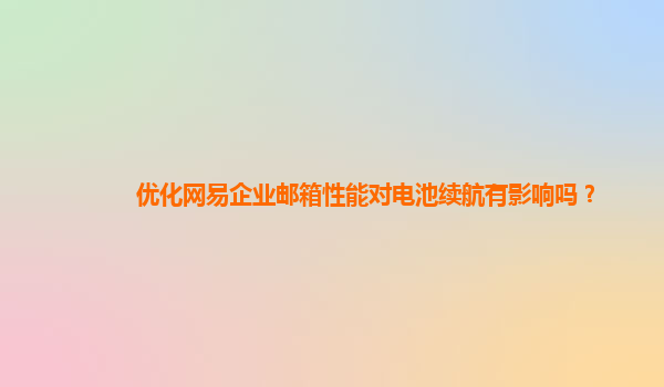 2024-11-01優(yōu)化網(wǎng)易企業(yè)郵箱性能對電池續(xù)航的影響 隨著信息化的發(fā)展,企業(yè)郵箱已成為現(xiàn)代企業(yè)溝通與協(xié)作的重要工具。網(wǎng)易企業(yè)郵箱憑借其穩(wěn)定的性能和豐富的功能,廣受用戶歡迎。然而,在使用移動設備訪問企業(yè)郵箱時,電池...