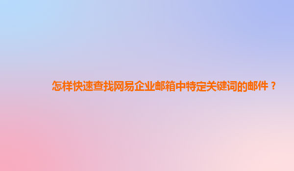 2024-11-01怎樣快速查找網(wǎng)易企業(yè)郵箱中特定關鍵詞的郵件? 在現(xiàn)代企業(yè)辦公中,郵箱是信息溝通的重要工具。網(wǎng)易企業(yè)郵箱憑借其強大的功能和穩(wěn)定的性能,受到許多企業(yè)的青睞。然而,隨著郵件數(shù)量的增加,如何快速查找特定關鍵詞...
