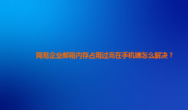 2024-11-01網(wǎng)易企業(yè)郵箱內存占用過高在手機端怎么解決? 隨著移動辦公的普及,越來越多的企業(yè)開始使用企業(yè)郵箱,網(wǎng)易企業(yè)郵箱憑借其穩(wěn)定性和豐富的功能,成為許多公司的首選。然而,在使用過程中,部分用戶反映手機端的內存占...