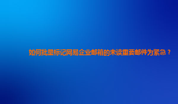 4008-020-360 如何批量標記網(wǎng)易企業(yè)郵箱的未讀重要郵件為緊急 引言 在現(xiàn)代企業(yè)管理中,郵件溝通是不可或缺的組成部分。網(wǎng)易企業(yè)郵箱以其強大的功能和用戶友好的界面,受到眾多企業(yè)的青睞。然而,在繁忙的工作中,如...