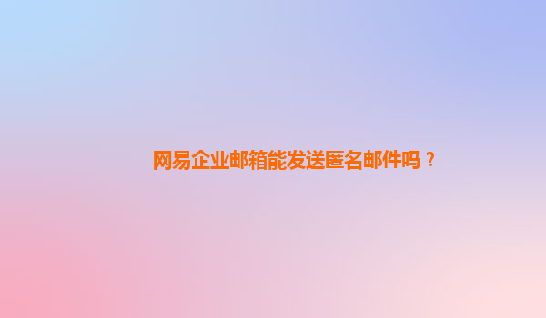 2024-11-01網(wǎng)易企業(yè)郵箱能發(fā)送匿名郵件嗎? 什么是匿名郵件? 匿名郵件是指發(fā)送者在發(fā)送郵件時,不透露自己的身份信息。這樣的郵件通常用于保護個人隱私,或者在某些情況下進行保密溝通。在現(xiàn)代社會,隨著信息安全和...