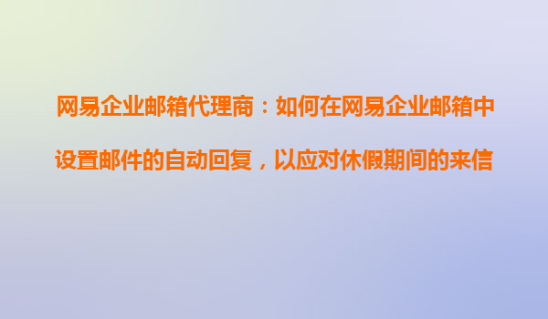 2025-10-23網(wǎng)易企業(yè)郵箱自動(dòng)回復(fù)功能:高效管理休假期間郵件往來(lái) 在職場(chǎng)中,臨時(shí)出差或休假期間無(wú)法及時(shí)回復(fù)郵件可能影響業(yè)務(wù)連續(xù)性。網(wǎng)易企業(yè)郵箱的自動(dòng)回復(fù)功能可幫助企業(yè)員工在不便處理郵件時(shí),自動(dòng)向發(fā)件人發(fā)送預(yù)設(shè)的...