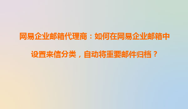 2025-10-23網(wǎng)易企業(yè)郵箱代理商:如何在網(wǎng)易企業(yè)郵箱中設(shè)置來(lái)信分類,自動(dòng)將重要郵件歸檔? 一、網(wǎng)易企業(yè)郵箱的優(yōu)勢(shì) 網(wǎng)易企業(yè)郵箱作為國(guó)內(nèi)領(lǐng)先的企業(yè)級(jí)郵箱服務(wù)提供商,憑借其強(qiáng)大的技術(shù)實(shí)力和穩(wěn)定的服務(wù),贏...