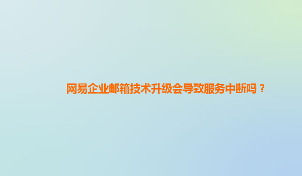 2024-10-30網易企業郵箱技術升級是否會導致服務中斷? 在信息化迅速發展的今天,企業郵箱已成為企業溝通和數據管理的核心工具。作為國內知名的企業郵箱服務提供商,網易企業郵箱以其穩定性、高效性以及優質的服務贏得了眾...