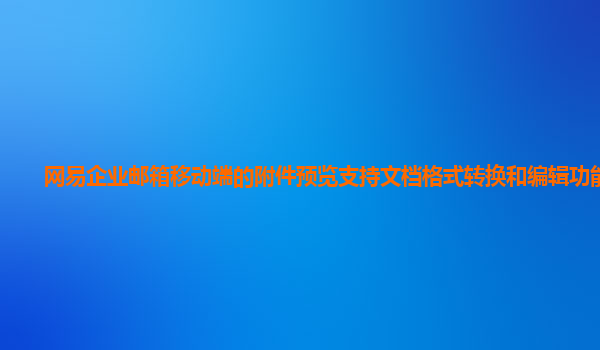 2024-10-30網(wǎng)易企業(yè)郵箱:移動端附件預(yù)覽、轉(zhuǎn)換及編輯功能解析 隨著企業(yè)對靈活辦公需求的日益增長,網(wǎng)易企業(yè)郵箱在移動辦公和附件處理方面的優(yōu)勢越發(fā)顯著。通過移動端支持的多樣功能,用戶不僅能夠隨時(shí)隨地高效預(yù)覽附件,還...